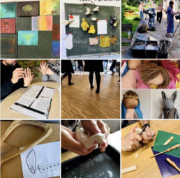 Die Arbeit an pädagogischen Themen bezieht sich auf konkrete Erziehungsfragen und deren Hintergründe. Die Seminarist:innen lernen die Methodik und Didaktik der Waldorfpädagogik kennen und erüben Handwerkszeug für die Praxis, so z.B. Reigen und Fingerspiele, Tischtheater, Schoßspiele, Marionettentheater, aber auch Naturpädagogik, Zikuspädagogik u.a.