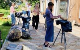 Im Künstlerisch-handwerklichen Unterricht geht es vor allem darum, neue Fähigkeiten und Fertigkeiten zu erlernen bzw. vorhandene Fähigkeiten zu vertiefen. Eine intensive Auseinandersetzung mit den Kunstfächern Eurythmie, Malen, Musik, Plastizieren, Sprache sowie Handarbeit (filzen, färben Puppen-nähen…) und Handwerk (schnitzen/Holzwerken, Korb flechten…) bildet hier das Angebot des Seminars.